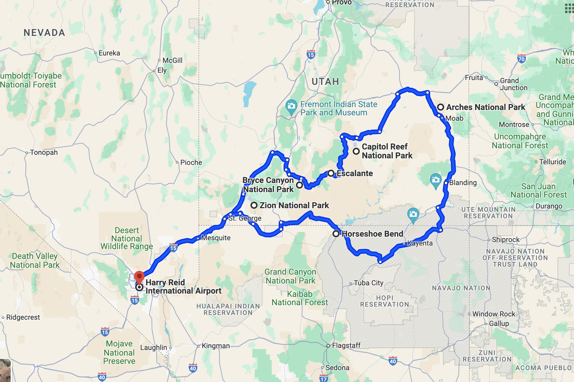 There are endless ways to map out your Utah adventure, but we opted for a loop starting and ending in Las Vegas, allowing us to break up the driving into manageable sections.